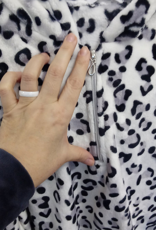 Стильный теплый женский комплект от украинского бренда Wiktoria. Комплект выполнен из качественного и мягкого материала, состоит из флисовой кофты кремового цвета в черный леопардовый принт и трикотажных лосин черного цвета. Кофта свободного силуэта, с длинными рукавами и капюшоном, лосины со средней посадкой и мягкой резинкой в поясе. Рукава кофты обработаны черными трикотажными манжетами, капюшон украшен забавными ушками. Костюм очень красивый и комфортный, идеален для дома, прогулок и подарка любимому или близкому человеку.