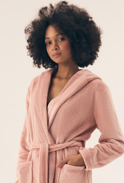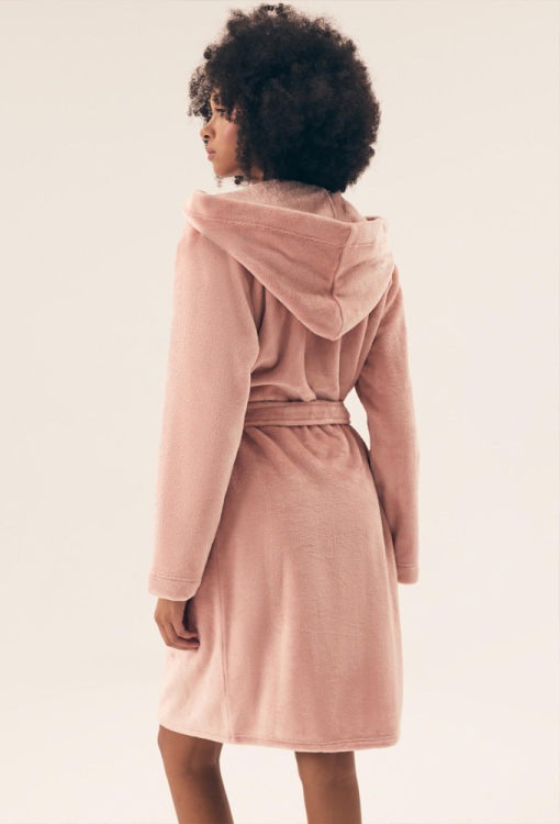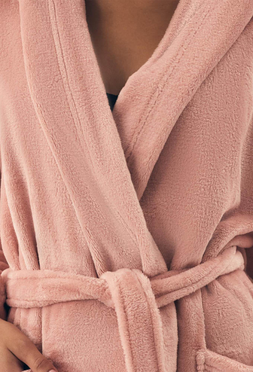 Теплый женский халат Bird от польского бренда Henderson Ladies. Халат выполнен из качественного и мягкого плюша розового цвета, свободного силуэта и длиной выше колен. Модель с длинными рукавами, капюшоном и двумя накладными карманами, завязывается на запах с помощью пояса. Халат очень красивый и комфортный, согреет утром или прохладными вечерами, а также может быть прекрасным подарком для любимого или близкого человека.