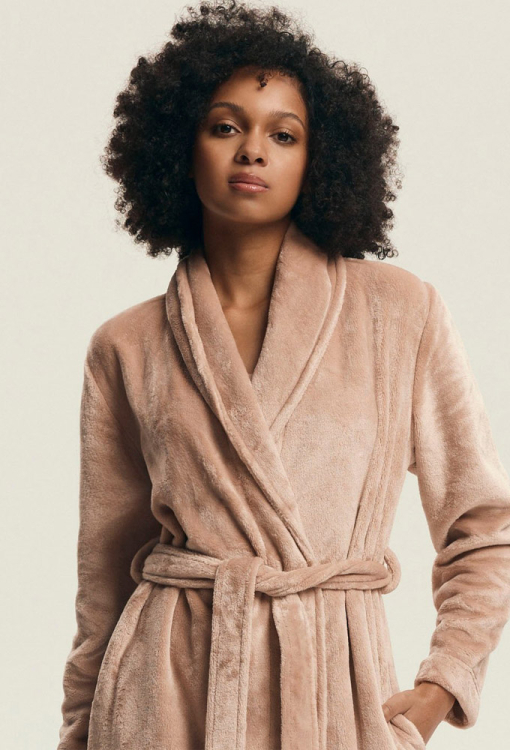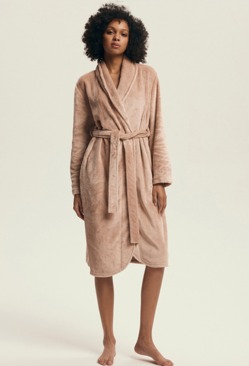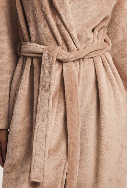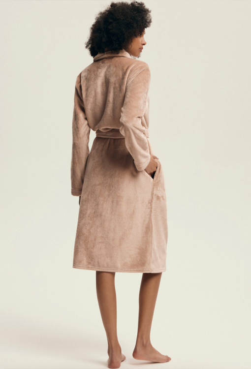 Элегантный и невероятно теплый женский халат Dextra от польского бренда Henderson Ladies. Халат выполнен из качественного и мягкого плюша персикового цвета, свободного силуэта, длиной чуть ниже колен и с закругленными полками. Модель с длинными рукавами, шалевым воротником и удобными боковыми карманами, завязывается на запах с помощью пояса. Халат очень красивый и комфортный, согреет утром или прохладными вечерами, а также может быть прекрасным подарком для любимого или близкого человека.