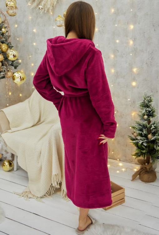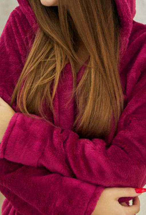 Шикарный женский халат от украинского бренда Tomiko. Халат выполнен из мягкого и качественного велсофта цвета фуксии, свободного силуэта и длиной ниже колен. Модель с длинными рукавами, двойным капюшоном и удобными накладными карманами, завязывается на запах с помощью пояса, длина рукава регулируется с помощью отложных манжет. Халат красивый и очень комфортный, согреет в холодное время года, также может быть прекрасным подарком любимому и близкому человеку!