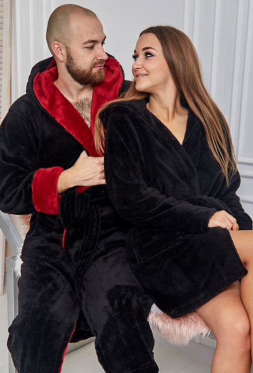 Теплый и приятный к телу женский халат от украинского бренда Tomiko. Халат выполнен из мягкого и качественного велсофта черного цвета, свободного силуэта и длиной выше колен. Модель с длинными рукавами, двойным капюшоном и удобными накладными карманами, завязывается на запах с помощью пояса, длина рукава регулируется за счет отложных манжет. Халат стильный очень комфортный, согреет в холодное время года, также может быть прекрасным подарком любимому и близкому человеку!