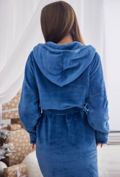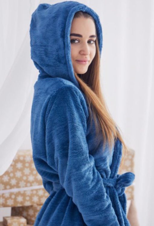 Стильный короткий женский халат от украинского бренда Tomiko. Халат выполнен из мягкого и качественного велсофта джинсового цвета, свободного силуэта и длиной выше колен. Модель с длинными рукавами, двойным капюшоном и удобными накладными карманами, завязывается на запах с помощью пояса, длина рукава регулируется за счет отложных манжет. Халат красивый и очень комфортный, обеспечит тепло и уют в холодное время года, также может быть прекрасным подарком любимому и близкому человеку!
