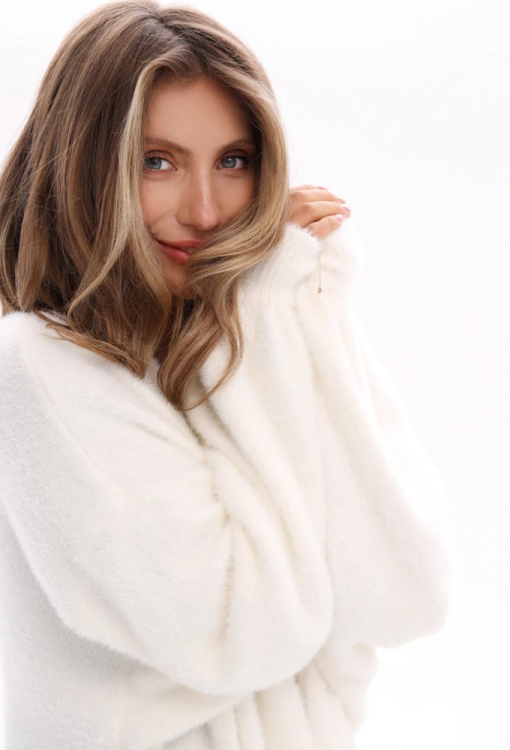 Уютный женский кардиган от украинского бренда German Volf - стильная универсальная вещь для холодного времени года. Кардиган выполнен из качественного и мягкого вязаного трикотажа кремового цвета, свободного силуэта и длиной выше колен. Модель с длинными пышными рукавами завязывается на запах с помощью пояса, рукава обработаны манжетами, которые придают изделию аккуратный вид. Кардиган очень красивый и комфортный, согреет длинными зимними вечерами, а также подойдет в качестве подарка любимому или близкому человеку!