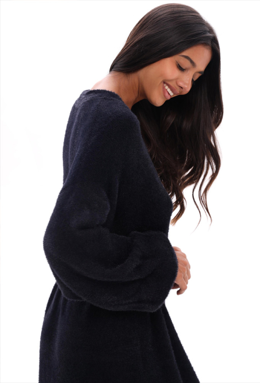 Уютный женский кардиган от украинского бренда German Volf - стильная универсальная вещь для холодного времени года. Кардиган выполнен из качественного и мягкого вязаного трикотажа черного цвета, свободного силуэта и длиной выше колен. Модель с длинными пышными рукавами завязывается на запах с помощью пояса, рукава обработаны манжетами, которые придают изделию аккуратный вид. Кардиган очень красивый и комфортный, согреет длинными зимними вечерами, а также подойдет в качестве подарка любимому или близкому человеку!