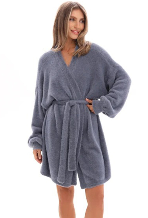 Уютный женский кардиган от украинского бренда German Volf - стильная универсальная вещь для холодного времени года. Кардиган выполнен из качественного и мягкого вязаного трикотажа темно-голубого цвета, свободного силуэта и длиной выше колен. Модель с длинными пышными рукавами завязывается на запах с помощью пояса, рукава обработаны манжетами, которые придают изделию аккуратный вид. Кардиган очень красивый и комфортный, согреет длинными зимними вечерами, а также подойдет в качестве подарка любимому или близкому человеку!