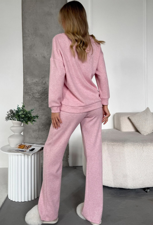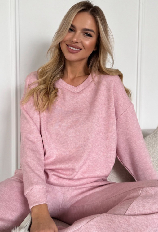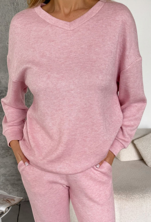 Теплый и комфортный женский костюм от украинского бренда Julia Ulich. Костюм выполнен из мягкой и качественной ангоры розового цвета, состоит из кофты со штанами свободного силуэта. Кофта с длинными рукавами, заниженным плечевым швом и V-образным вырезом горла, на рукавах и внизу обработана манжетами. Штаны с мягкой резинкой в поясе и удобными боковыми карманами. Костюм очень красивый и приятный к телу, идеальный выбор для домашнего уюта и стиля, также может быть полезным подарком любимому и близкому человеку!