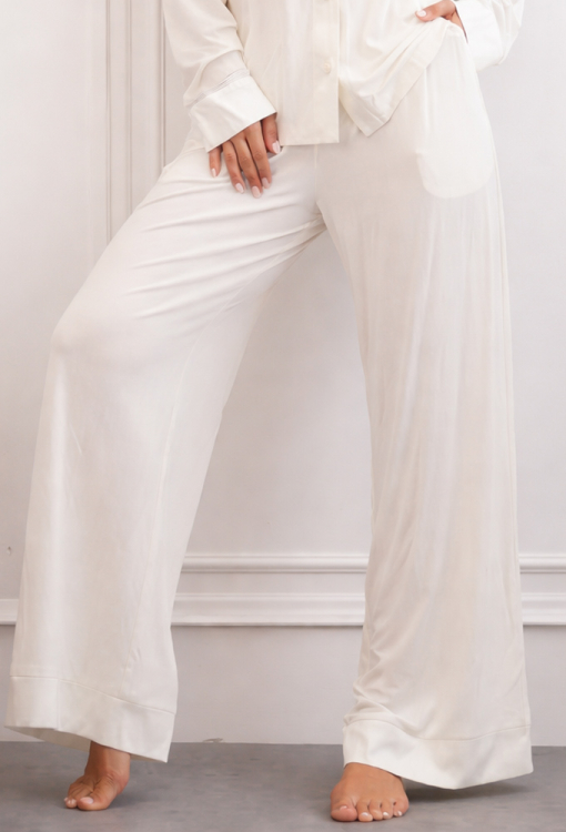Стильный женский костюм Tancy от украинского бренда Komilfo. Костюм выполнен из мягкого и качественного модала кремового цвета, состоит из рубашки и штанов свободного силуэта. Рубашка с длинными рукавами на манжетах и воротником стойкой, застегивается на пуговицы. Штаны с мягкой резинкой в поясе и удобными боковыми карманами. Костюм очень красивый и комфортный, идеален для домашнего отдыха, упакованный в фирменную коробку - отличный подарок близким людям!