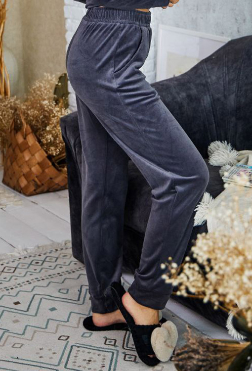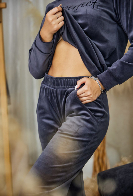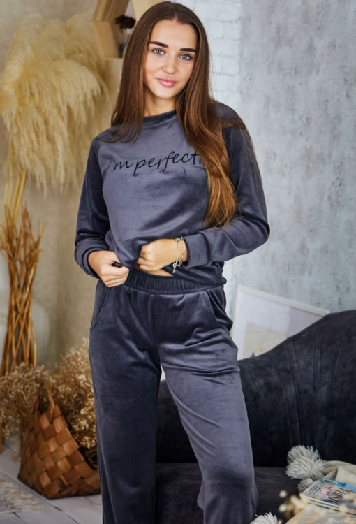 Комфортный женский костюм от украинского бренда Tomiko созданный для уюта и ежедневного пользования. Костюм выполнен из мягкого и качественного велюра графитового цвета, что дарит тепло и комфорт. Комплект состоит из кофты прямого силуэта и удобных брюк на манжетах. Кофта с длинными рукавами и круглым вырезом горла, украшена лаконичной вышивкой с надписью, что придает образу стильного акцента. Штаны с мягкой резинкой в поясе и удобными боковыми карманами, создают удобную посадку, не сковывают движений. Костюм красивый и комфортный, идеален для дома и отдыха, а также может стать отличным подарком для близкого человека.