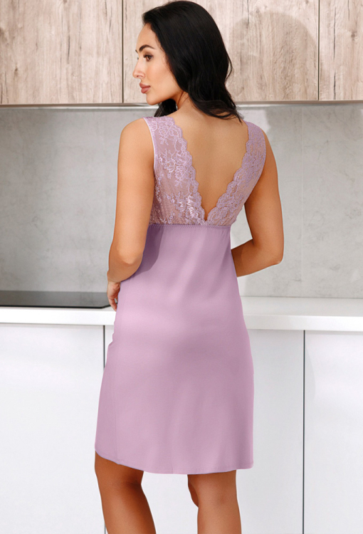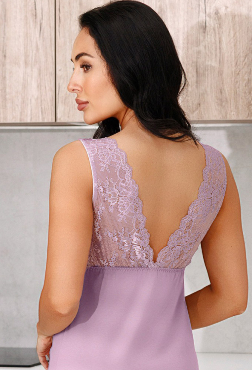 Соблазнительная женская ночнушка из коллекции Amalia от украинского бренда Roksana. Ночнушка выполнена из мягкого и качественного хлопка розового цвета, полуприлегающего силуэта и длиной выше колен. Модель без рукавов, с глубоким V-образным декольте и таким же вырезом на спине. Лиф и спинка изделия украшены кружевом и атласным бантиком по центру декольте, мягкая резинка под грудью, красиво формирует бюст. Ночнушка стильная и очень комфортная, в ней также можно заниматься домашними делами, или использовать в качестве подарка любимому и близкому человеку.
