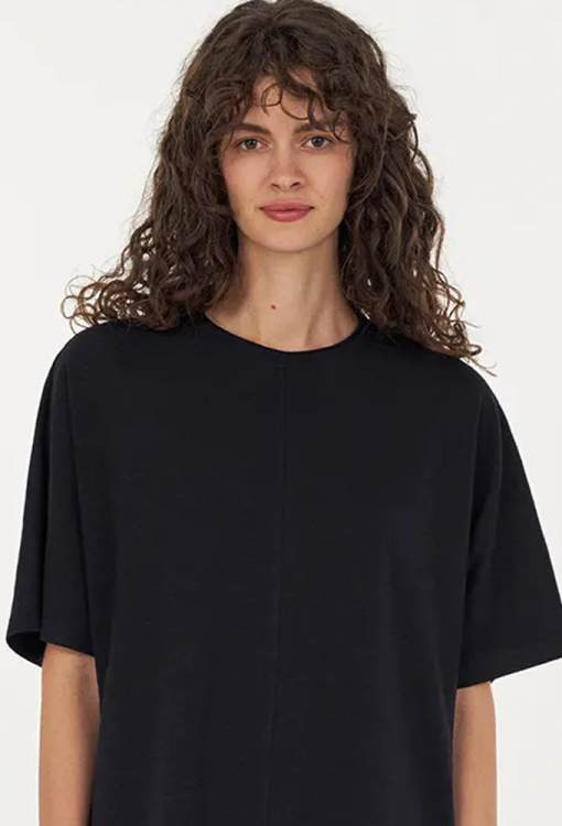Классическая женская ночнушка из коллекции Linen Black от украинского бренда Ellen. Ночнушка выполнена из качественного и мягкого хлопка черного цвета, свободного силуэта и длиной выше колен. Модель с широкими короткими рукавами и небольшим круглым вырезом горла, вдоль передней полки обработана декоративным швом. Изделие обладает превосходной воздухопроницаемостью и не сковывает движений во время сна. Ночнушка очень красивая и комфортная, также может быть прекрасной одеждой для дома или полезным подарком любимому и близкому человеку.