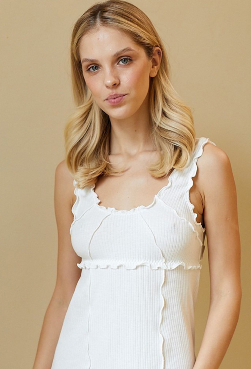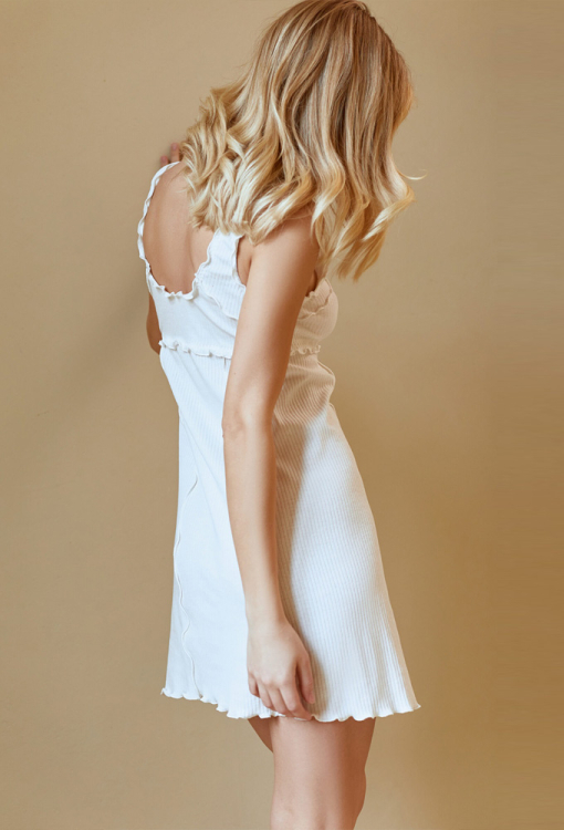 Очаровательная женская ночнушка из коллекции Moon от украинского бренда Your Touch. Ночнушка выполнена из мягкого и качественного хлопка в рубчик белого цвета, полуприлегающего силуэта и длиной выше колен. Модель на широких бретелях и с квадратным декольте, вырез, бретели, линия под грудью и низ изделия украшены волнистым швом. Ночнушка очень красивая и комфортная, идеальна для сна, а также подарка любимому и близкому человеку.