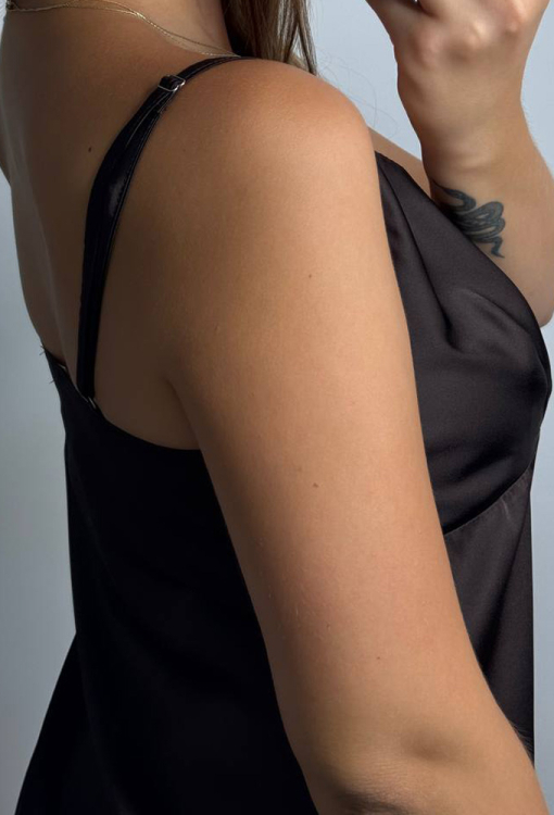 Соблазнительная женская ночнушка от украинского бренда V.Velika. Ночнушка выполнена из мягкого и качественного шелка Армани темно-коричневого цвета, полуприлегающего силуэта, длиной мини и небольшими боковыми разрезами. Модель с тонкими регулируемыми бретелями и V-образным декольте, обработана выточками на груди и подрезом под грудью. Ночнушка очень легкая и приятная к телу, подчеркнет сексуальность домашнего образа, также может быть замечательным подарком для любимого и близкого человека.