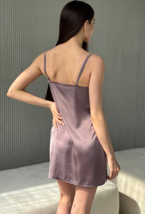 Соблазнительная женская ночнушка от украинского бренда V.Velika. Ночнушка выполнена из мягкого и качественного шелка Армани цвета мокко, полуприлегающего силуэта, длиной мини и небольшими боковыми разрезами. Модель с тонкими регулируемыми бретелями и V-образным декольте, обработана выточками на груди и подрезом под грудью. Ночнушка очень легкая и приятная к телу, подчеркнет сексуальность домашнего образа, также может быть замечательным подарком для любимого и близкого человека.