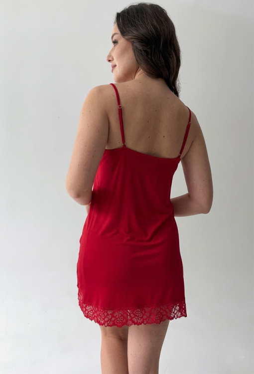Сексуальная женская ночнушка от украинского бренда Shato. Ночнушка выполнена из качественной и мягкой вискозы красного цвета, прилегающего силуэта и длиной мини. Модель с тонкими регулируемыми бретелями и V-образным декольте, внизу слева обработана привлекательным разрезом. Линия декольте, низ и разрез изделия украшены вставками из ажурного кружева, лиф оформлен изящной подвеской. Ночнушка очень красивая и приятная к телу, также будет отличным подарком для любимого или близкого человека.