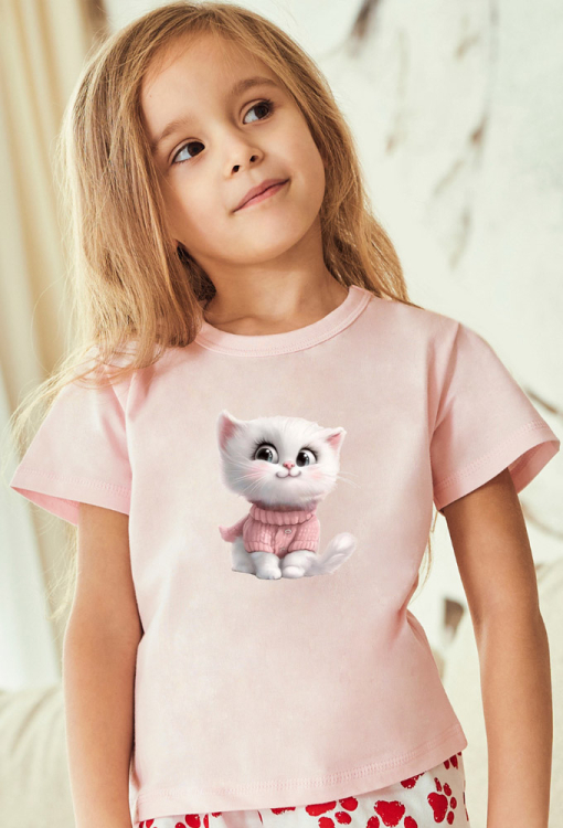 Замечательная детская пижама для девочки Nala от польского бренда Taro. Пижама выполнена из качественного и мягкого хлопка, состоит из футболки розового цвета и кремовых шорт с принтом в виде красных следов котенка. Футболка с короткими рукавами и круглым вырезом горла, спереди по центру украшена принтом милого котика в свитере. Шорты с мягкой резинкой в поясе. Пижама очень красивая и комфортная, также может быть замечательным подарком любимому ребенку.