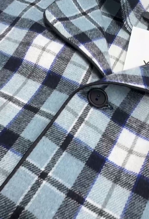 Уютная мужская пижама от украинского бренда BO.Brand - стильный и практичный комплект на холодное время года. Пижама выполнена из мягкой и качественной фланели с начёсом, в клетчатый принт серо-голубого цвета с черным акцентом, состоит из рубашки и штанов прямого силуэта. Рубашка с длинными рукавами, отложным воротником и накладным карманом на груди застёгивается на пуговицы, воротник, планки, рукава и карман украшены тонким чёрным кантом, что придаёт модели аккуратный и выразительный вид. Штаны с мягкой резинкой на талии обеспечивают удобную посадку и свободу движений. Пижама не только красивая и приятная к телу - она станет отличным вариантом для сна и отдыха, а также полезным подарком любимому или близкому человеку.