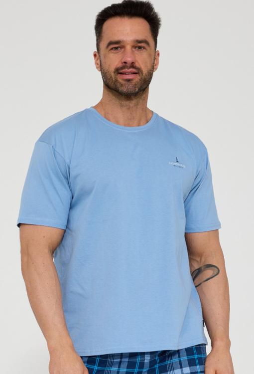 Элегантная мужская пижама Bell Rock от польского бренда Cornette. Пижама выполнена из качественного и мягкого хлопка, состоит из футболки голубого цвета и темно-синих штанов с голубым клетчатым принтом. Футболка с короткими рукавами и круглым вырезом горла, на груди слева украшена небольшим принтом в виде маяка. Штаны прямого кроя, с удобной посадкой и мягкой резинкой в поясе. Пижама очень красивая и комфортная, идеальна для сна и домашнего отдыха, упакованная в коробку, станет замечательным подарком близким людям.