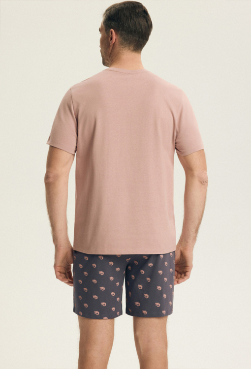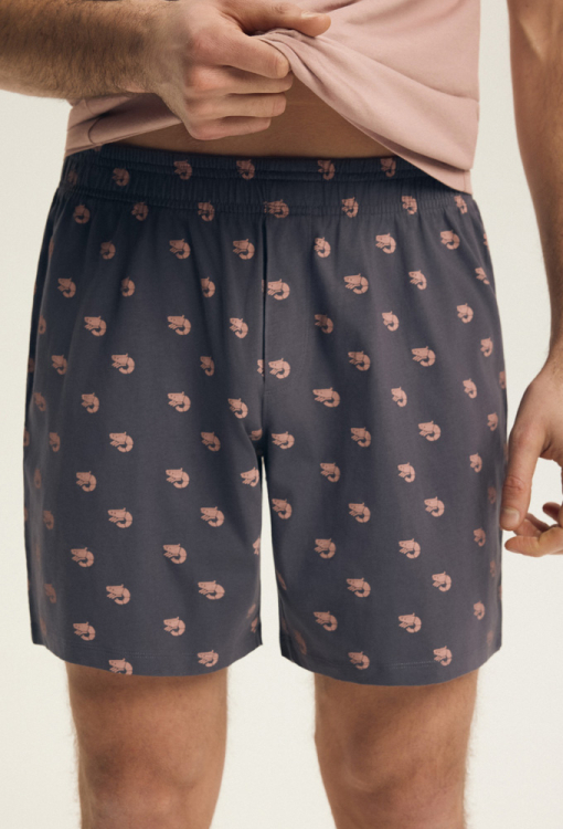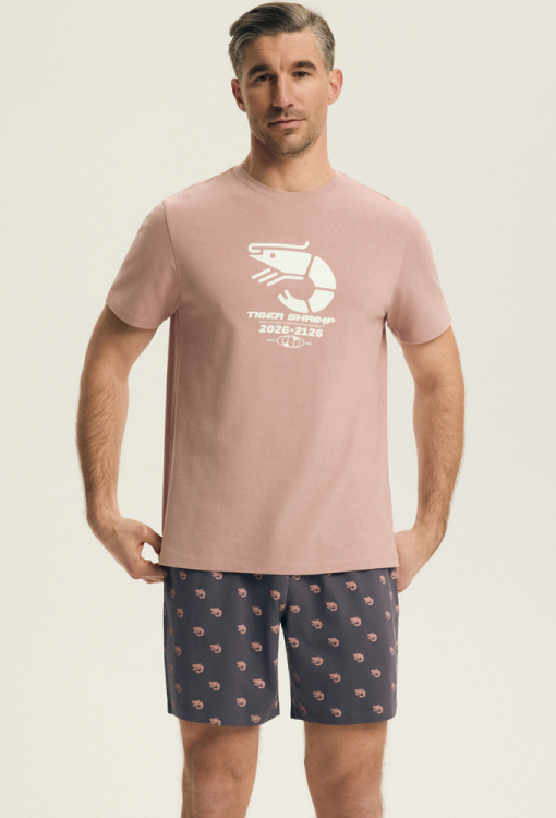 Летняя пижама мужская Brad от польского бренда Henderson. Пижама выполнена из качественного и мягкого хлопка, состоит из футболки розового цвета и фиолетовых шорт с мелким принтом в виде креветок розового цвета. Футболка с короткими рукавами и круглым вырезом горла, спереди украшена стильным принтом из крупной креветки и надписи "tiger shrimp". Шорты прямого кроя и с мягкой резинкой в поясе, создают максимальный комфорт и свободу движений. Пижама красивая и невероятно удобная, идеальна для уютного сна и расслабленных домашних вечеров, упакована в фирменную коробку, станет приятным подарком для любимого и близкого человека.