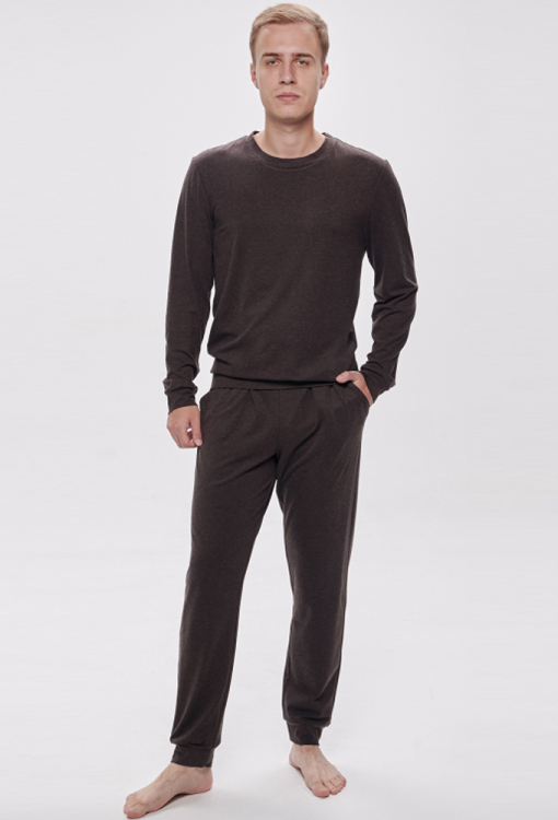 Теплая пижама мужская от украинского бренда Shato. Пижама выполнена из качественной и мягкой утепленной вискозы коричневого цвета, состоит из кофты и штанов. Кофта с длинными рукавами и круглым вырезом горла, на рукавах и внизу обработана манжетами. Штаны с мягкой резинкой в поясе и удобными боковыми карманами, внизу обработаны манжетами. Пижама очень комфортная и приятная к телу, также может быть удобной домашней одеждой или подарком для любимого или близкого человека.