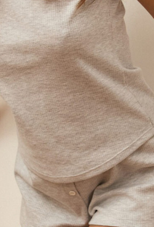 Летняя женская пижама из коллекции Trendy от украинского бренда Your Touch. Пижама выполнена из мягкого и качественного хлопка в рубчик серого цвета, состоит из футболки и коротких шорт. Футболка прямого силуэта с короткими рукавами и круглым вырезом горла, рукава и горловина модели украшены кантом белого цвета. Шорты свободного кроя и с мягкой резинкой в поясе, внизу по бокам обработаны небольшими разрезами, спереди украшены тремя пуговицами. Пижама очень красивая и комфортная, также может быть удобной одеждой для дома, или замечательным подарком любимому и близкому человеку.