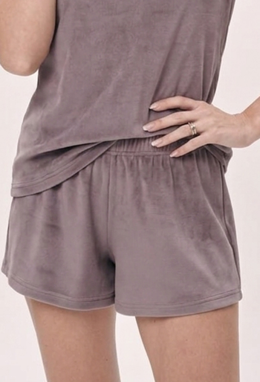 Удобная женская пижама от украинского бренда Wiktoria. Пижама выполнена из качественного и мягкого велюра цвета капучино, состоит из футболки и шорт свободного силуэта. Футболка с короткими рукавами и круглым вырезом горла, шорты с удобной посадкой и мягкой резинкой в поясе. Пижама очень красивая и комфортная, может быть использована в качестве домашней одежды или подарка любимому и близкому человеку.