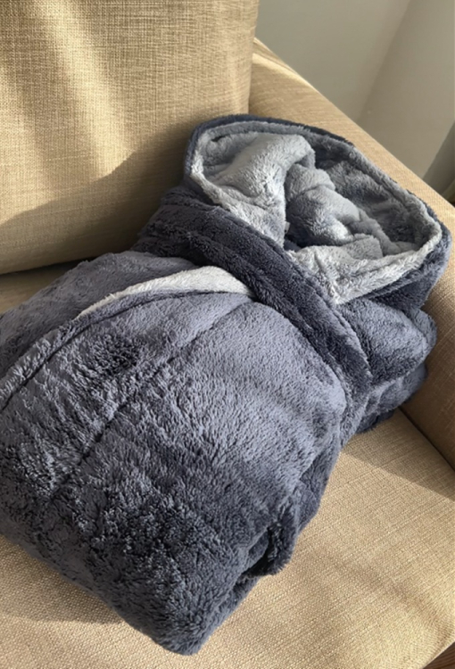Теплий та приємний до тіла чоловічий халат від українського бренду Tomiko. Халат виконаний з м'якого та якісного велсофту графітового кольору, з довгими рукавами та капюшоном. Модель довжиною нижче колін й зі зручними накладними кишенями, зав'язується на запах за допомогою пояса. Капюшон всередині та відкладні манжети моделі виконані із велсофта сірого кольору. Халат дуже красивий і комфортний, ідеальний після ванної, басейну та для домашнього затишку, а також може бути чудовим подарунком коханій чи близькій людині.