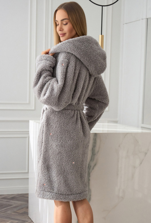 Теплий жіночий халат від польського бренду L&L. Халат виконаний з якісного та м'якого плюшу сірого кольору, з довгими рукавами та капюшоном. Модель довжиною вище колін і зі зручними боковими кишенями, зав'язується на запах за допомогою пояса. Халат гарний і дуже комфортний, ідеальний для домашнього користування – як для лінивого ранку, так і для прохолодних вечорів вдома, а також може бути чудовим подарунком коханій та близькій людині.