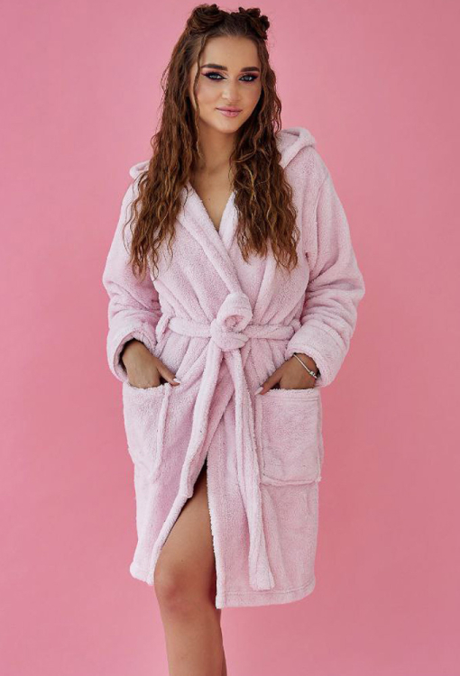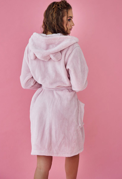 Красивий та теплий жіночий халат від українського бренду Tomiko. Халат виконаний з м'якого та якісного велсофту пудрового кольору, вільного силуету та довжиною вище колін. Модель з довгими рукавами, двома накладними кишенями та капюшоном з потішними вушками, зав'язується на запах за допомогою пояса, довжина рукава регулюється відкладними манжетами. Халат стильний і дуже комфортний, зігріє в холодну пору року, також може бути чудовим подарунком коханій та близькій людині!