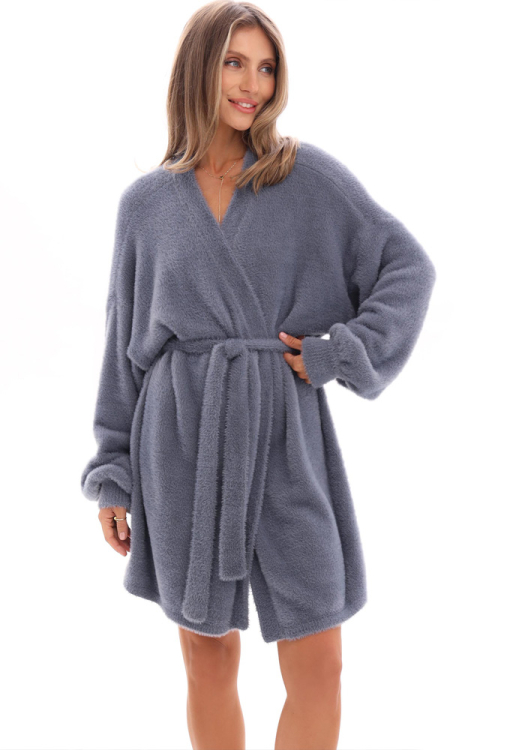 Затишний жіночий кардиган від українського бренду German Volf - стильна універсальна річ для холодної пори року. Кардиган виконаний з якісного і м'якого в'язаного трикотажу темно-блакитного кольору, вільного силуету і довжиною нижче колін. Модель з довгими пишними рукавами зав'язується на запах за допомогою пояса, рукави оброблені манжетами, які надають виробу акуратного вигляду. Кардиган дуже красивий і комфортний, зігріє довгими зимовими вечорами, а також підійде як подарунок коханій або близькій людині!