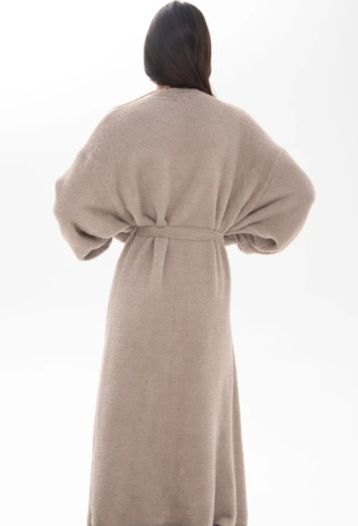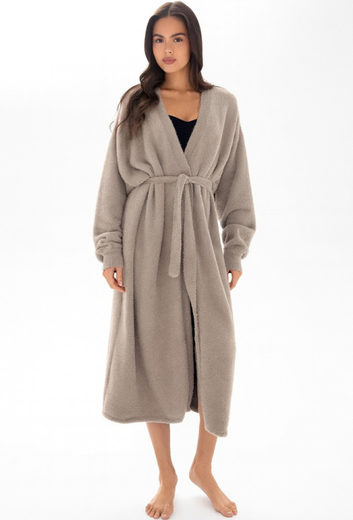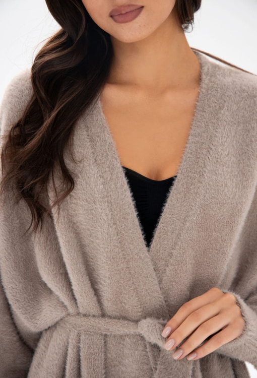 Теплий жіночий кардиган від українського бренду German Volf - стильна універсальна річ для холодної пори року. Кардиган виконаний з якісного і м'якого в'язаного трикотажу бежевого кольору, вільного силуету і довжиною нижче колін. Модель з довгими рукавами зав'язується на запах за допомогою пояса, рукави оброблені манжетами, які надають виробу акуратного вигляду. Кардиган дуже красивий і комфортний, зігріє довгими зимовими вечорами, а також підійде як подарунок коханій або близькій людині!