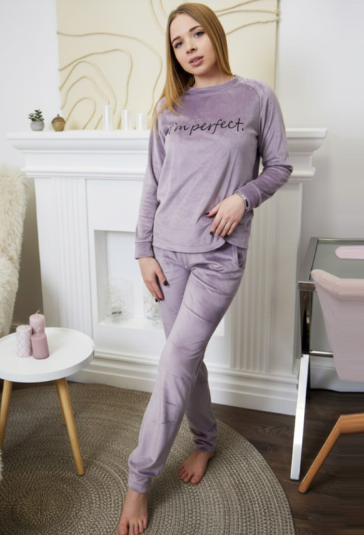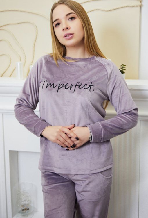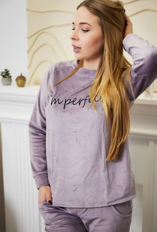 Красивий жіночий костюм від українського бренду Tomiko створений для затишку та щоденного користування. Костюм виконаний з м'якого та якісного велюру бузкового кольору, що дарує тепло та комфорт. Комплект складається з кофти прямого силуету та штанів на манжетах. Кофта з довгими рукавами та круглим вирізом горла, прикрашена лаконічною вишивкою з написом, що надає образу стильного акценту. Штани з м'якою гумкою в поясі та бічними кишенями, створюють комфортну посадку, не сковують рухів. Костюм гарний та зручний, ідеальний для дому та відпочинку, а також може стати чудовим подарунком для близької людини.
