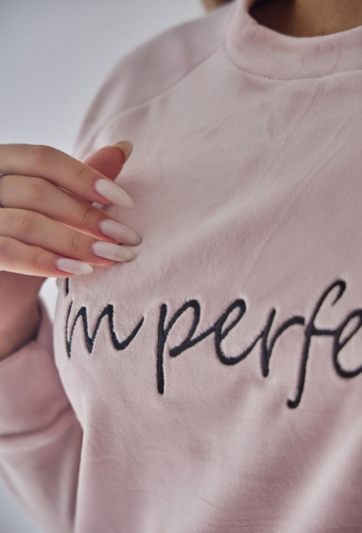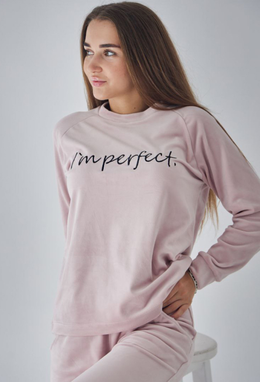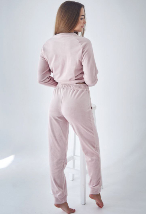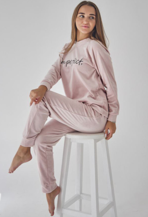 Комфортний жіночий костюм від українського бренду Tomiko створений для затишку та щоденного користування. Костюм виконаний з м'якого та якісного велюру пудрового кольору, що дарує тепло та комфорт. Комплект складається з кофти прямого силуету та зручних штанів на манжетах. Кофта з довгими рукавами та круглим вирізом горла, прикрашена лаконічною вишивкою з написом, що надає образу стильного акценту. Штани з м'якою гумкою в поясі та зручними бічними кишенями, створюють зручну посадку, не сковують рухів. Костюм гарний та комфортний, ідеальний для дому та відпочинку, а також може стати чудовим подарунком для близької людини.