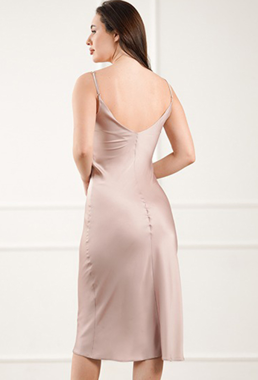 Витончена нічна сорочка з колекції Jemma від українського бренду Komilfo. Сорочка виконана з м'якого та якісного шовк-сатину пудрового кольору, прилеглого силуету та довжиною трохи нижче колін. Модель на тонких бретелях, що регулюються, з глибоким V-подібним декольте і таким же вирізом на спині, підкреслить фігуру і додасть вишуканості образу. Нічна сорочка дуже гарна і комфортна, ідеальна для сну та особливих моментів у домашньому оточенні, упакована у фірмову коробку, підійде для подарунка коханій жінці або дівчині!