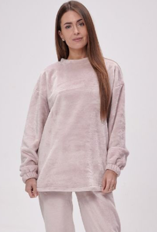 Жіноча тепла піжама від українського бренду Wiktoria. Піжама виконана з якісного та м'якого флісу пудрового кольору, складається з подовженої кофти та штанів на манжетах. Кофта вільного силуету, з довгими рукавами на манжетах та круглим вирізом горла, штани з м'якою гумкою в поясі та зручними бічними кишенями. Піжама дуже красива і комфортна, також буде зручним одягом для дому або чудовим подарунком коханій та близькій людині.