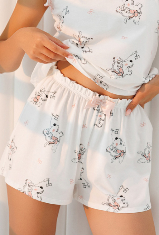 Легка жіноча піжама з колекції Провокація від українського бренду Roksana. Піжама виконана з м'якої та якісної бавовни білого кольору із кумедним принтом у вигляді котів та собак, складається з майки та шорт вільного силуету. Майка з тонкими регульованими бретелями та V-подібним декольте, по лінії вирізу прикрашена хвилястим швом рожевого кольору, бретелі виконані в тон оздоблення. Шорти зі зручною посадкою та м'якою гумкою у поясі, прикрашені рожевим атласним бантиком на талії. Піжама дуже красива і приємна до тіла, ідеальна для сну та затишного домашнього відпочинку, а також може бути корисним подарунком коханій та близькій людині.