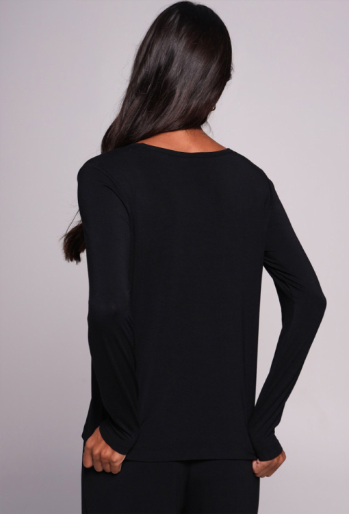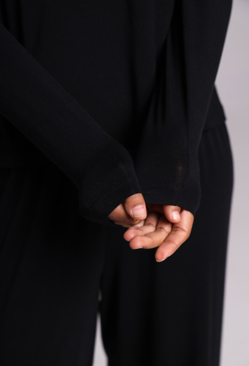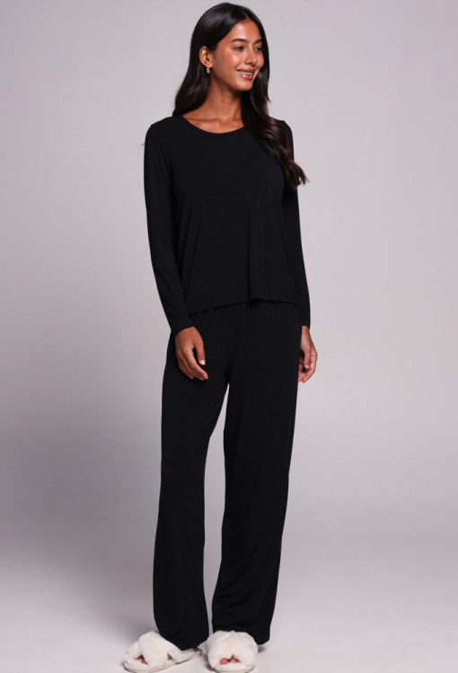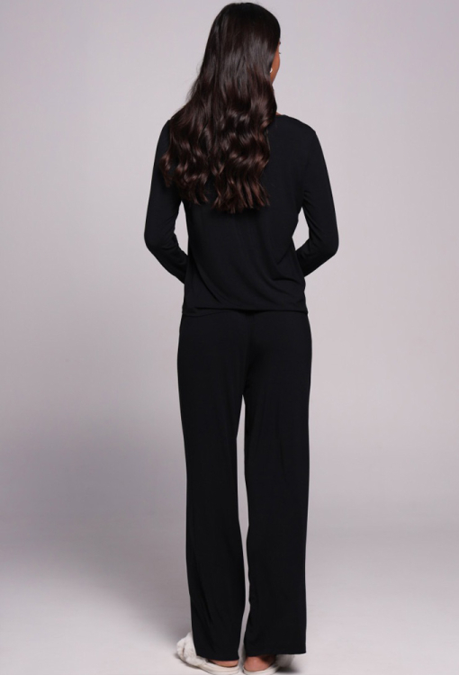 Комфортна жіноча піжама від українського бренду German Volf. Піжама виконана з якісного та м'якого мікромодала чорного кольору, складається з кофти та штанів вільного силуету. Кофта з довгими рукавами та круглим вирізом горла, штани зі зручною посадкою та м'якою гумкою у поясі - неймовірна м'якість, свобода рухів та абсолютний комфорт. Піжама красива і приємна до тіла, ідеальна для дому, сну, відпочинку та затишних вечорів, також може бути чудовим подарунком коханій або близькій людині.