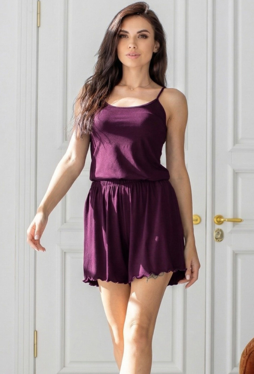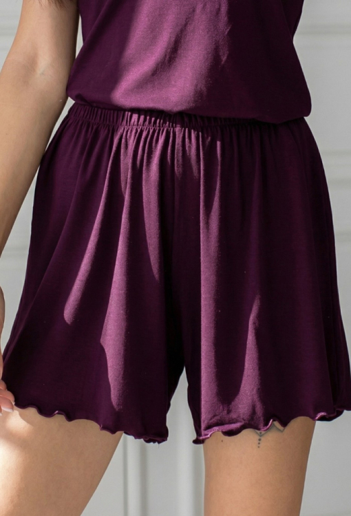 Легка жіноча піжама від українського бренду MiaNaGreen. Піжама виконана з м'якої та якісної віскози сливового кольору, складається з майки та шортів. Майка напівприлеглого силуету, на тонких бретелях, що регулюються і з круглим декольте, шорти вільного крою та з м'якою гумкою в поясі, внизу оброблені декоративним швом. Піжама дуже красива та приємна до тіла, ідеальний варіант для сну та домашнього відпочинку, а також може бути гарним подарунком близьким людям!