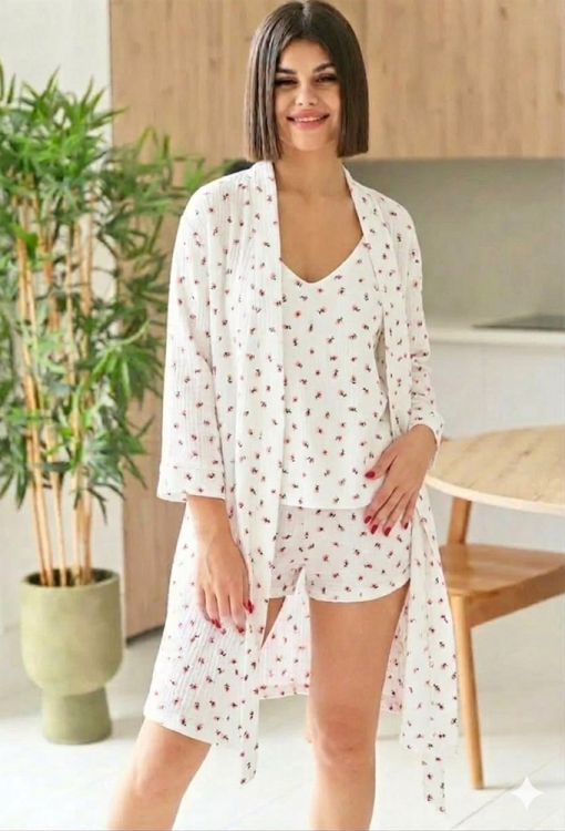 Піжама жіноча з халатом муслін LoomLine 13-17TW